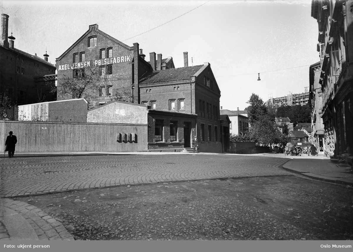 Kjøttforretningen i TorggataAxel Jensen startet kjøttforretning i Pilestredet i 1893. Siden flyttet hovedforretningen til Youngstoret, i Torggata. Steget over i industri kom etter at han overtok bryggerianlegget etter Fortuna & Central i 1924 på Fredensborg.