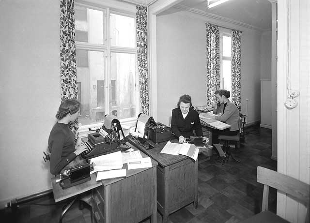Kontoret i Fleischers Kjemiske Fabrikk i 1952. Bedriften hadde like mange funksjonærer som arbeidere, med kontorister, laboranter, selgere osv.Han ansatte mange dyktige selgere som bearbeidet merkedene over hele landet i konkurranse med andre sterke merkenavn innen maling, med Alf Bjercke og Jotun som de to største. Der de ikke fikk innpass i lokale butikker startet de opp egne utsalg. Det førte til at de i 1971 eide 17 butikker og var medeiere i ytterligere 24.