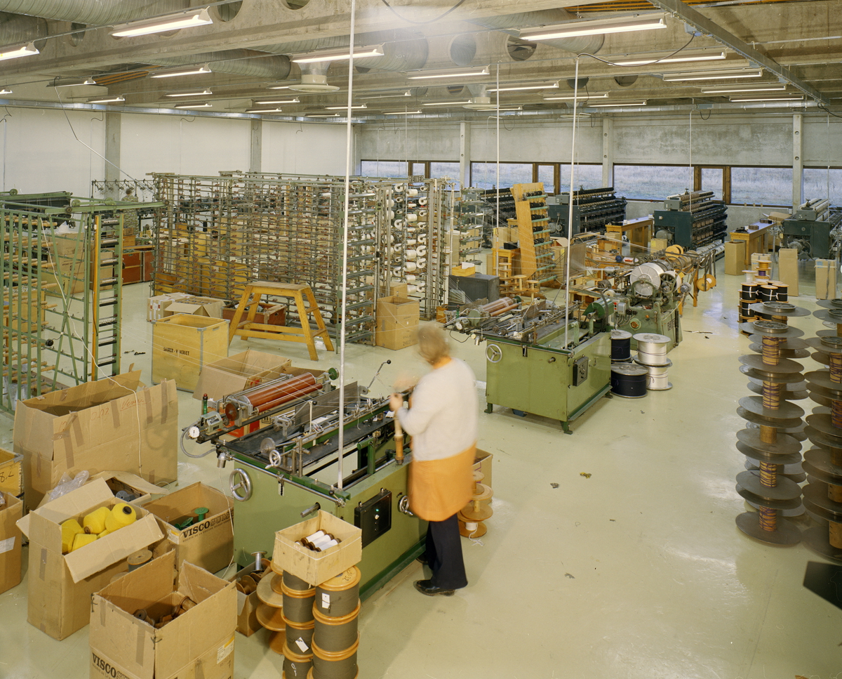I påvente av ny fabrikk ble deler av produksjonen startet alt i 1973 i ledige lokaler etter Bomuldsspinderiet, som hadde lagt ned i 1971. Oslo-arkitekt Rolf Ramm Østgård tegnet den moderne og funksjonelle fabrikken. Den hadde en avdeling for fletting av snorer, lisser og bånd og en for veving av bånd og elsatikk.